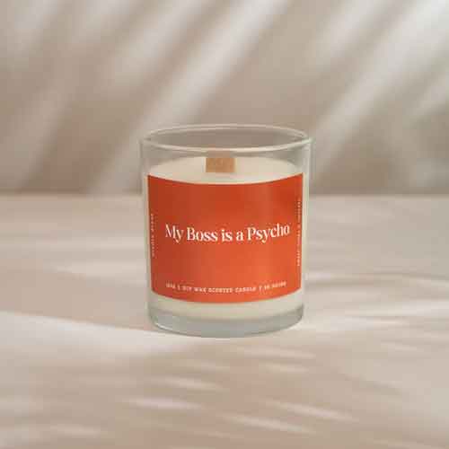 Grounding, soothing, and quietly defiant—MY BOSS IS A PSYCHO is your post-work reset in a jar. A warm amber base meets relaxing lavender to melt away office noise and restore your equilibrium. This 150g soy candle turns pressure into peace and deadlines into deep breaths.